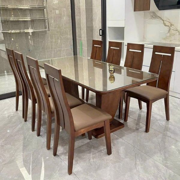 •   - Sản phẩm: 1 bàn + 8 ghế bọc Da